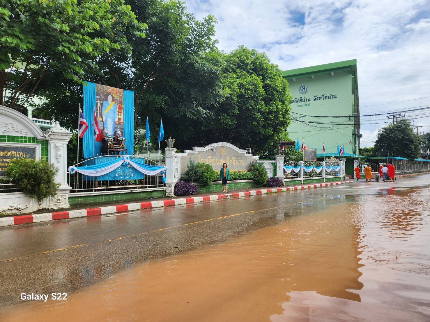 ดร.สิงห์เพชร สุทธิ ผู้อำนวยการสำนักงานเขตพื้นที่การศึกษามัธยมศึกษาน่าน ลงพื้นที่ติดตามสถานการณ์น้ำท่วมในตัว อ.เมืองน่าน จ.น่าน และสถานศึกษาในสังกัด โดยได้ลงพื้นที่ติดตามสถานการณ์น้ำ ณ ตลาดตั้งจิตนุสรณ์และโรงเรียนศรีสวัสดิ์วิทยาคารจังหวัดน่าน พร้อมกันนี้ นางโสภา ชวนวัน รองผู้อำนวยการสำนักงานเขตพื้นที่การศึกษามัธยมศึกษาน่าน ก็ได้เข้าตรวจเยี่ยมให้กำลังใจนักเรียนหอพักโรงเรียนนันทบุรีวิทยา ในพระบรมราชานุเคราะห์และ โรงเรียนสตรีศรีน่าน ซึ่งสถานการณ์น้ำท่วมในจังหวัดน่านตอนนี้ยังอยู่ในขั้นวิกฤต ด้วยมวลน้ำจากทางภาคเหนือได้ไหลงเข้าท่วมบ้านเรือนที่อยู่บริเวณริมน้ำ และเริ่มไหลเข้าท่วมในตัว อ.เมืองน่านหลายพื้นที่