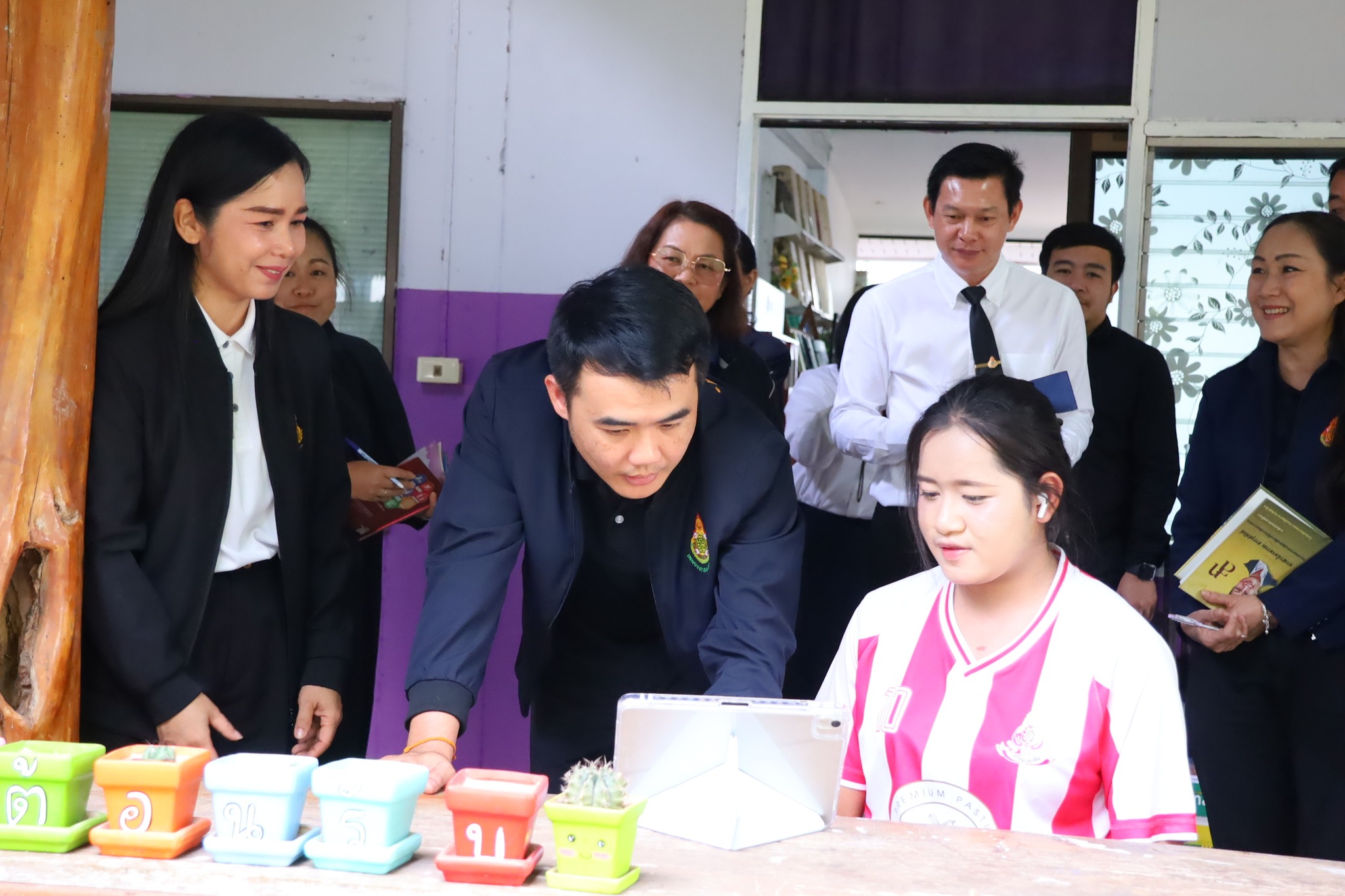 การลงพื้นที่ติดตามงานในครั้งนี้ได้รับเกียรติจาก ดร.นพพร แสงอาทิตย์ ผู้อำนวยการกลุ่มวิจัยและส่งเสริมวิจัยทางการศึกษา สพฐ. เป็นหัวหน้าคณะติดตามผลการดำเนินงาน ซึ่งมุ่งเน้นการติดตามความก้าวหน้าในด้านต่างๆ อาทิ การส่งเสริมสุขภาพอนามัย การผลิตอาหารเพื่อโภชนาการในโรงเรียน การพัฒนาทักษะวิชาชีพ และการอนุรักษ์ทรัพยากรธรรมชาติและสิ่งแวดล้อม